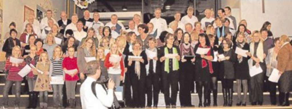 Stimmgewaltig überzeugten alle Mitwirkenden beim gemeinsamen Schlusslied, vorne mitte mit Brille: Josef Bortenschlager.